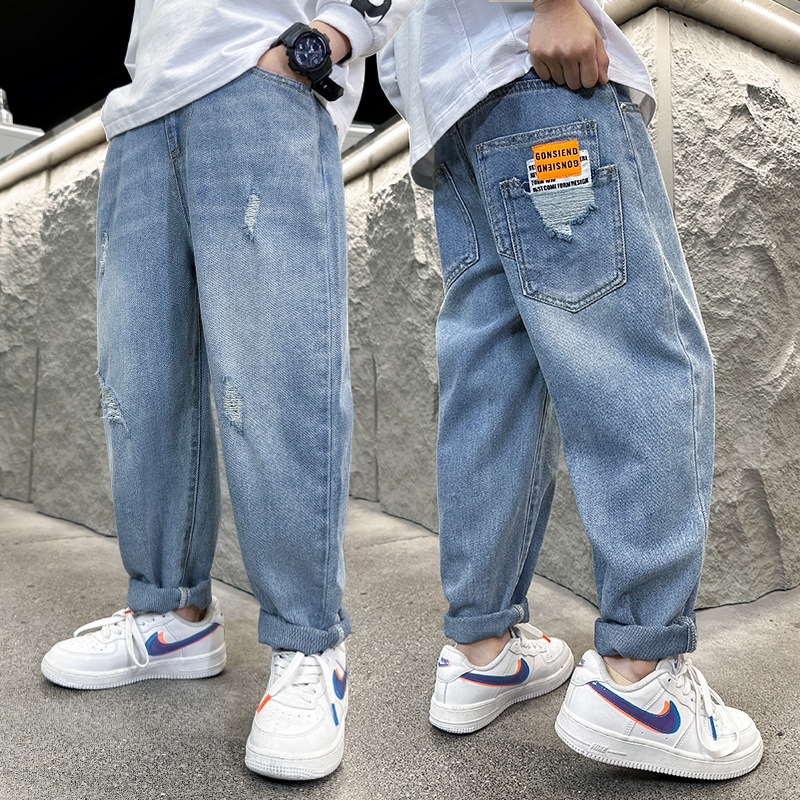 Детские джинсы 2024 весна-лето оптом из Китая - образец стильной одежды для маленьких модников. Теперь ваш магазин сможет предложить клиентам новую коллекцию ярких джинсовых брюк, которые стали настоящим трендом в этом сезоне.