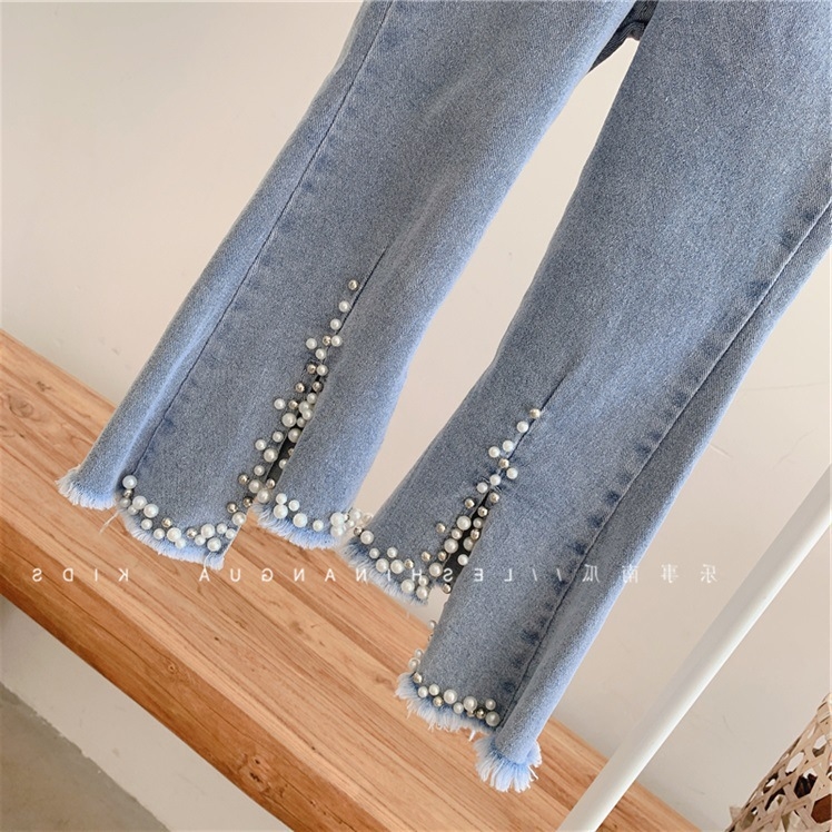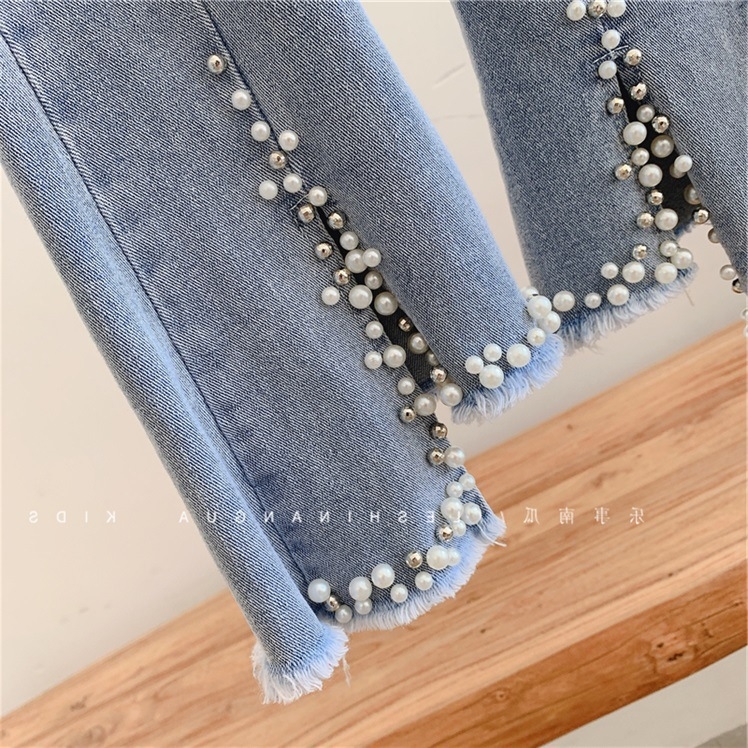 Женские джинсы с жемчугом и кружевами - отличный выбор для маленьких модниц, которые ценят стиль и комфорт!