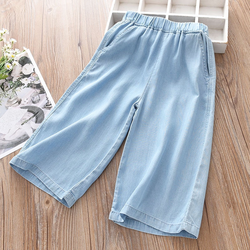 Модель: Летние джинсовые широкие штаны для девочек оптом из Китая