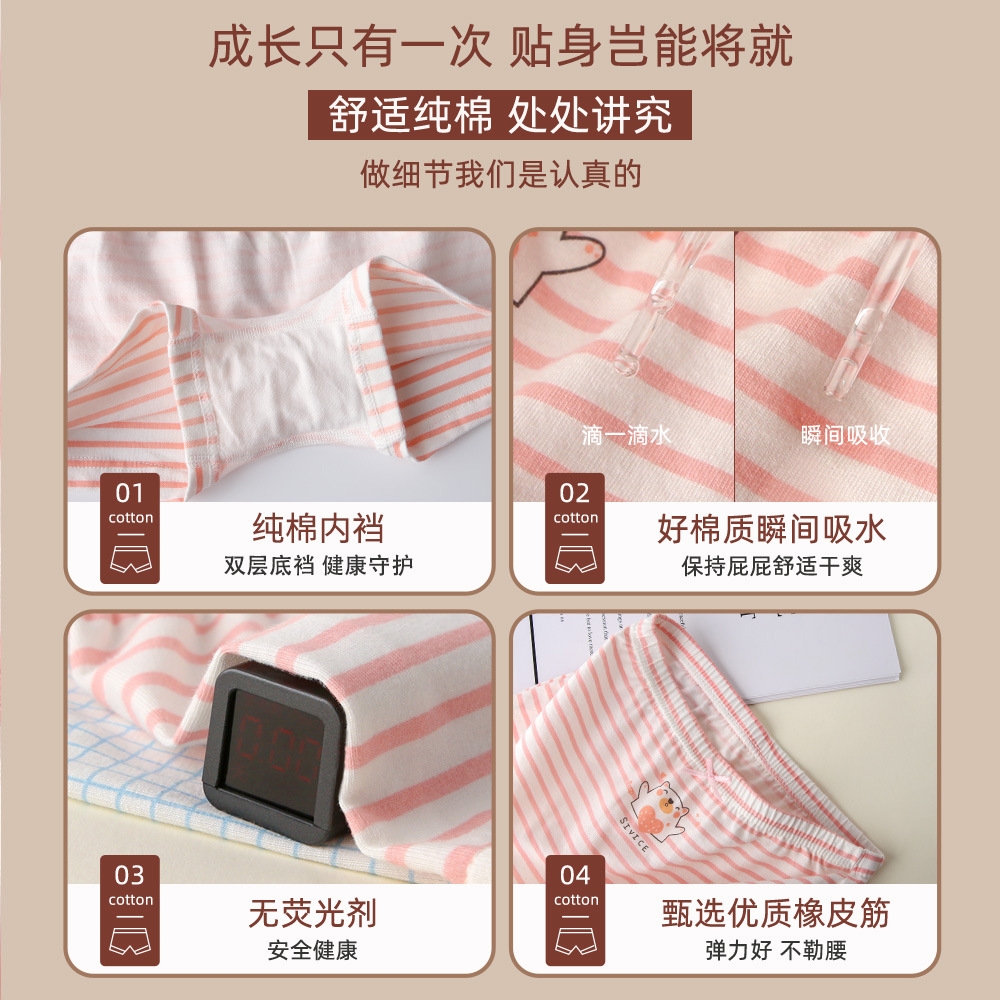 Детские трусы для девочек оптом из Китая - это четыре пары трусов, выполненных из 100% чистого хлопка с антимикробной обработкой класса A. Трусики имеют милый дизайн и идеально подходят для девочек от 3 до 8 лет различного роста и веса. Каждый набор содержит разные цветовые варианты трусов, что делает их универсальным выбором для маленьких модниц. Все изделия прошли стандартную проверку качества и пригодны для повседневного ношения.
