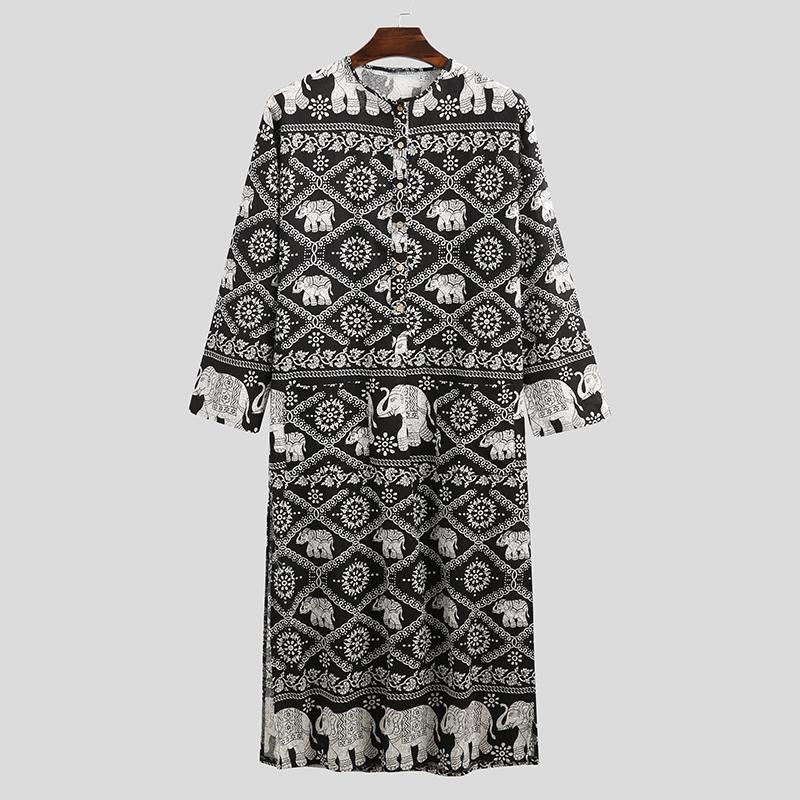 Новая коллекция мужской одежды - 2023穆斯林长袍欧美新款男装休闲宽松甲骨文民族印花长款睡袍 представляет собой стильную и удобную робу для дома и отдыха. Роба изготовлена из высококачественного материала, сочетающего в себе комфорт и стиль. Удлиненный крой и национальный принт делают эту робу уникальной и яркой. Этот товар идеально подойдет для интернет-магазинов, салонов красоты и магазинов одежды.