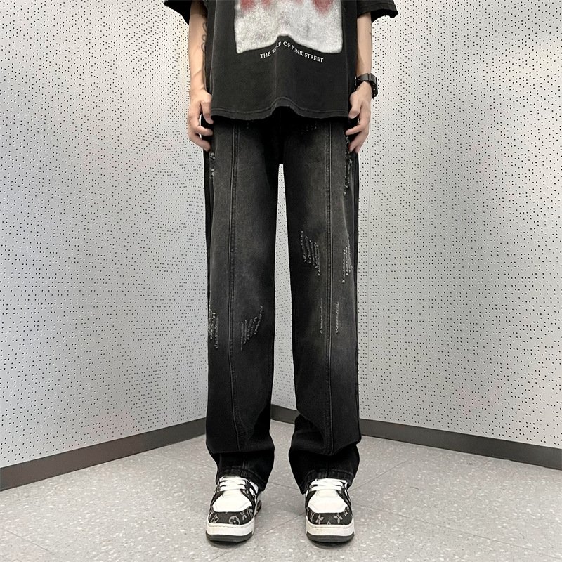 Мы предлагаем эти черные джинсы с износом оптом из Китая по привлекательной цене, что делает их отличным вариантом для бизнеса в сфере моды.