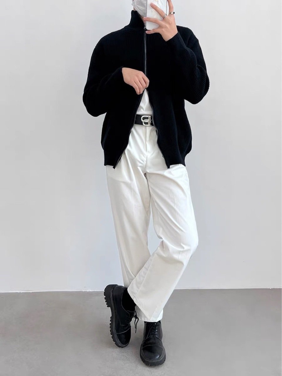 Тяжелый свитер-куртка MM6 - идеальный выбор для мужчин, которые ценят стиль и комфорт. Этот свитер-куртка с высокими и полувысокими воротниками с двойной молнией обеспечивает непревзойденную защиту от холода.
