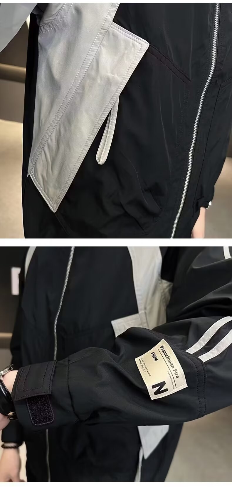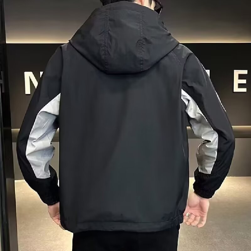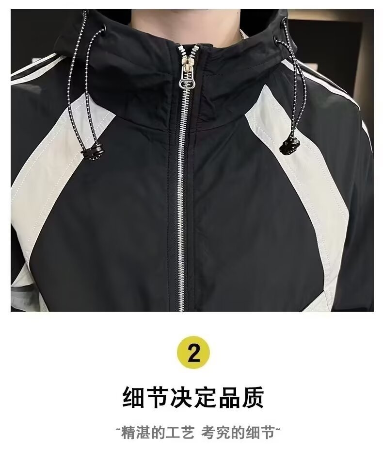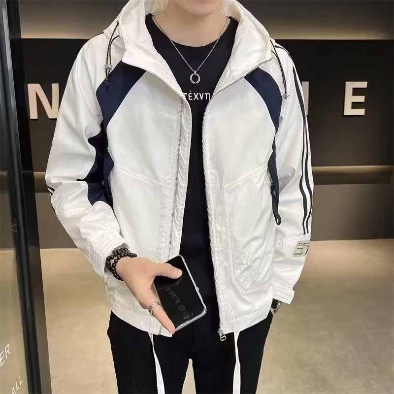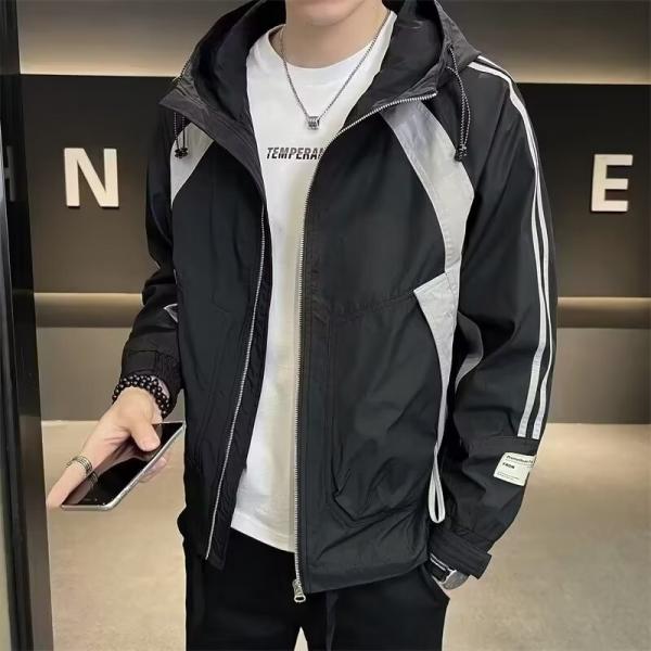 Мужская куртка с полосками и капюшоном оптом из Китая - это стильная и удобная одежда для осени. Куртка предлагается в двух цветах: черном и белом, что позволяет выбрать подходящий вариант для любого стиля. Куртка имеет удобные боковые карманы и застежку на молнии, а также капюшон, который пригодится во время ветреной погоды.