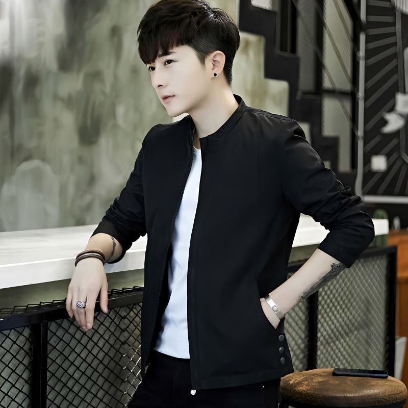 2023春秋季外套男士立领夹克韩版潮流修身青年百搭上衣服纯色男装 - это идеальное сочетание качества, стиля и удобства. Доступные цвета включают в себя черный, серый, синий и другие. Разнообразие размеров позволит подобрать подходящий вариант для каждого клиента. Куртка выполнена из прочного материала, который обеспечивает прекрасную защиту от износа.