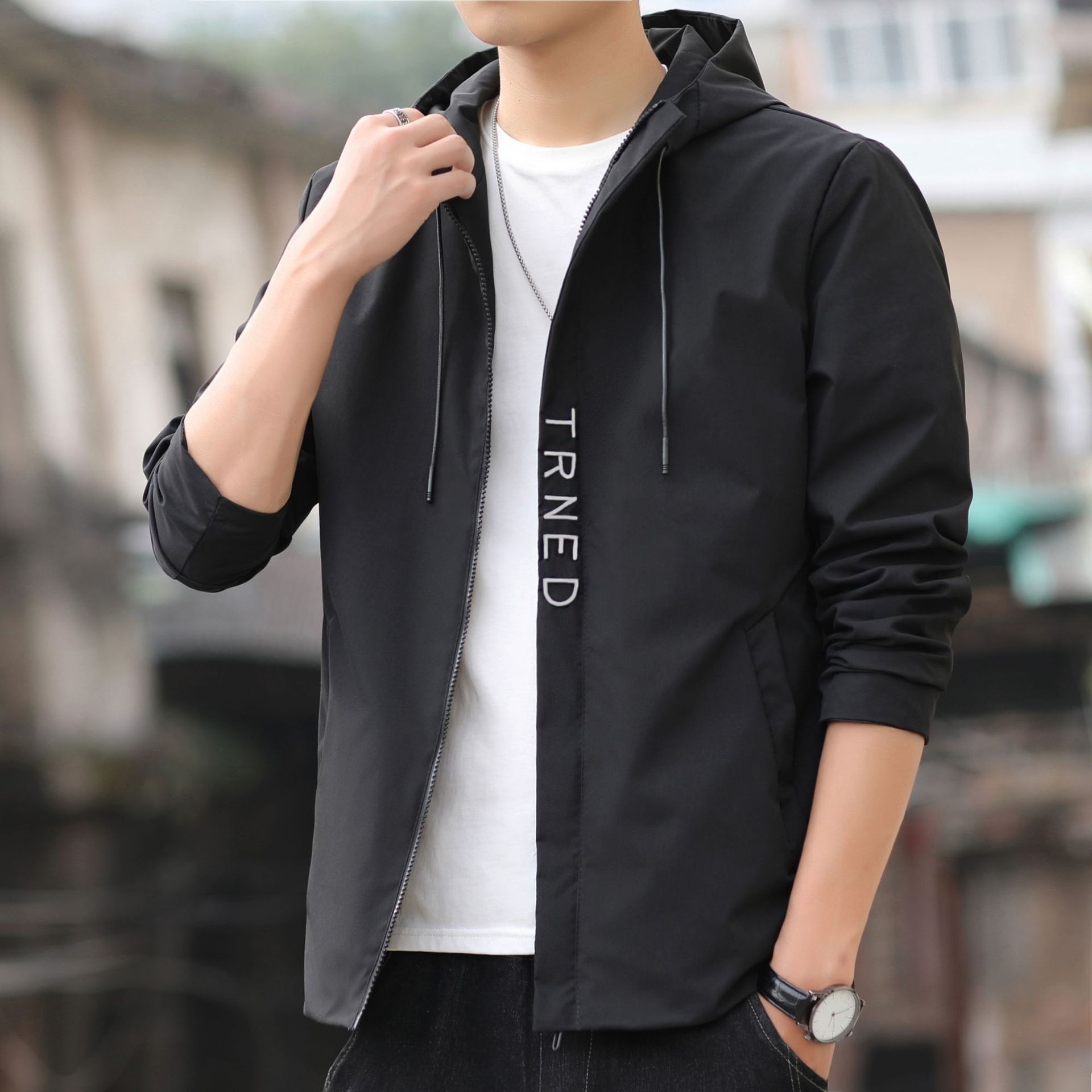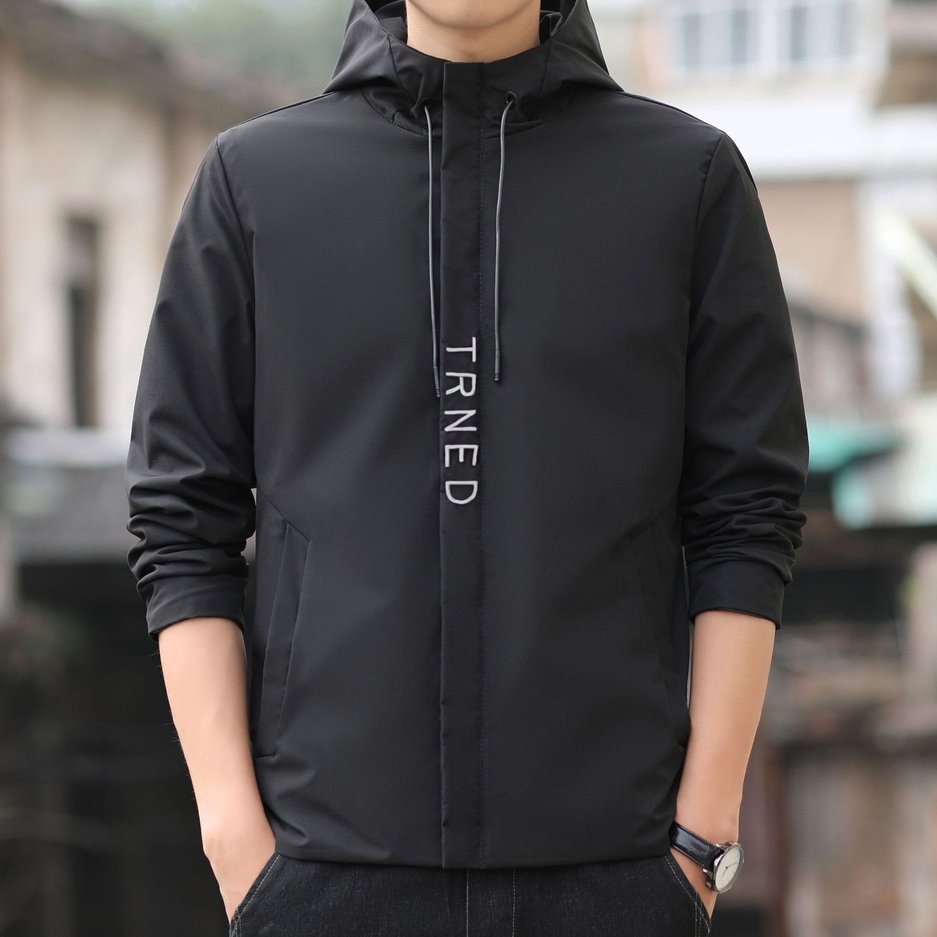 Представляем вам мужскую весеннюю куртку с капюшоном оптом из Китая. Эта стильная куртка имеет спортивный дизайн, идеально подходит для молодежи в возрасте от 18 до 24 лет. Куртка выполнена из прочного и износостойкого материала, который при этом хорошо дышит, что делает ее отличным выбором для активного отдыха.