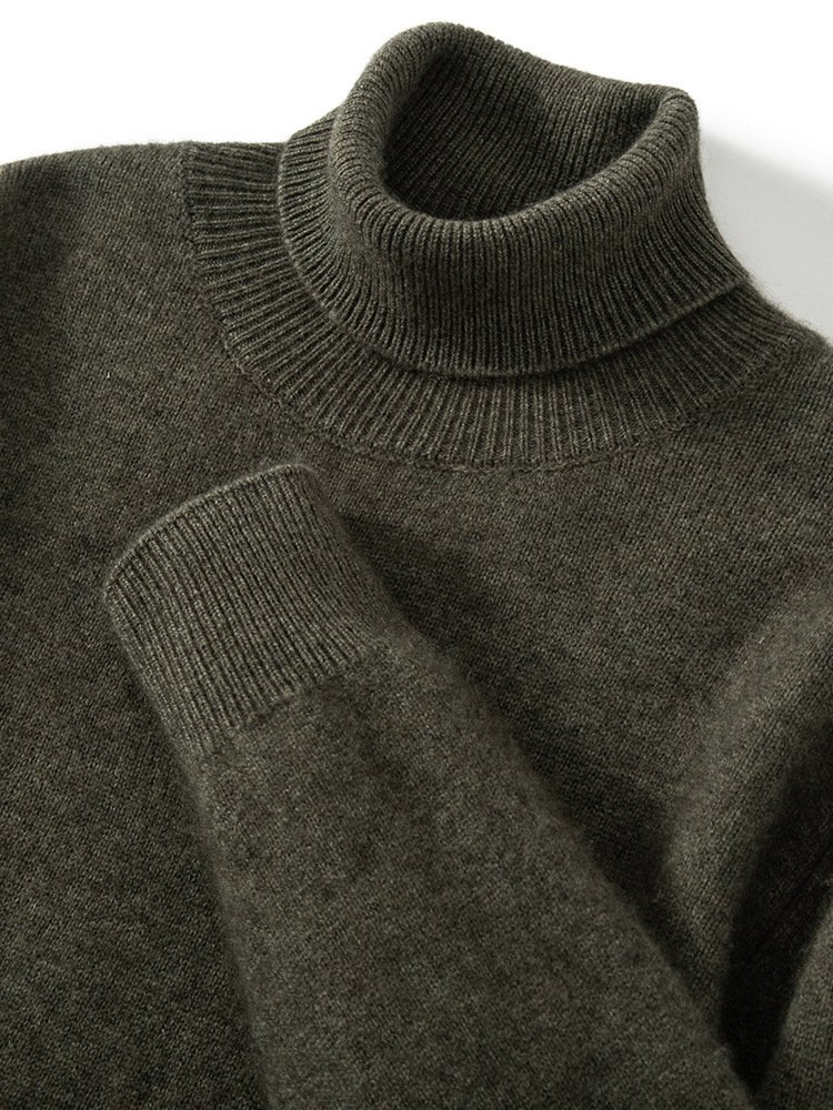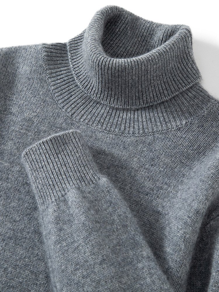 Мужской свитер из кашемира с высоким воротником создан с применением технологии сшивания, что делает его прочным и износостойким. Этот свитер подходит для ношения в повседневной жизни в холодное время года. Он отлично сидит по фигуре благодаря своему плотному крою.