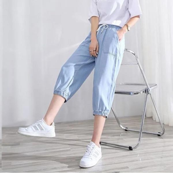 цвет: YL7722#天丝束脚七分裤-浅兰,YL7722#天丝束脚七分裤-深蓝
