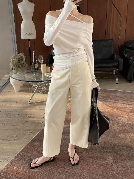 GRACETINA HOO 2024 весенние брюки из чистого хлопка оптом из Китая предлагают комфорт и стиль благодаря своему прямому крою и высокому качеству материалов. Необычные, модные цвета - высокий черный и кремовый абрикос придают этим брюкам особый шарм.