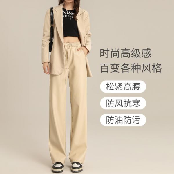 2024春季新款高腰休闲皮裤女防裂PU皮防水免洗阔腿裤个性时尚女裤 – это элегантные, комфортные и стильные кожаные брюки для женщин. Эти брюки с высокой посадкой и прямыми штанинами будут выглядеть модно и подчеркивать достоинства фигуры. Они доступны в различных цветах: черный, молочно-белый, карамельный, темно-серый, кофейный, розовый.