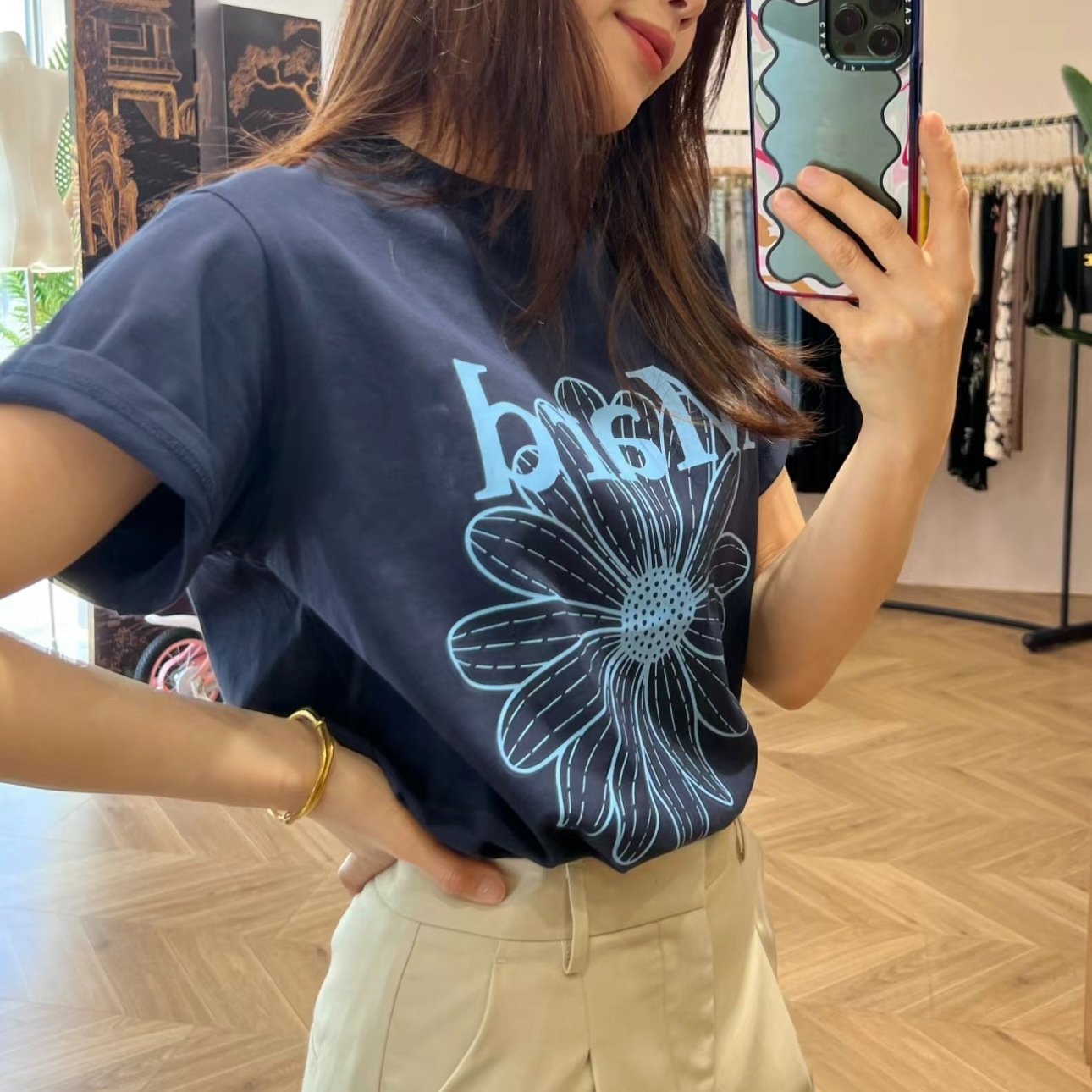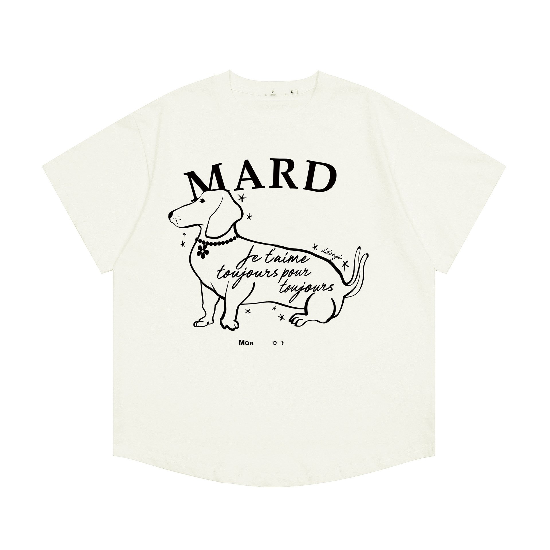 Эта футболка стала настоящим хитом в мире моды благодаря своему удобству, качеству и модному дизайну. Изготовлена из 100% хлопка, что делает ее легкой и приятной к телу. Дизайн декорирован принтом милой маленькой собачки, который добавляет товару неповторимый шарм.