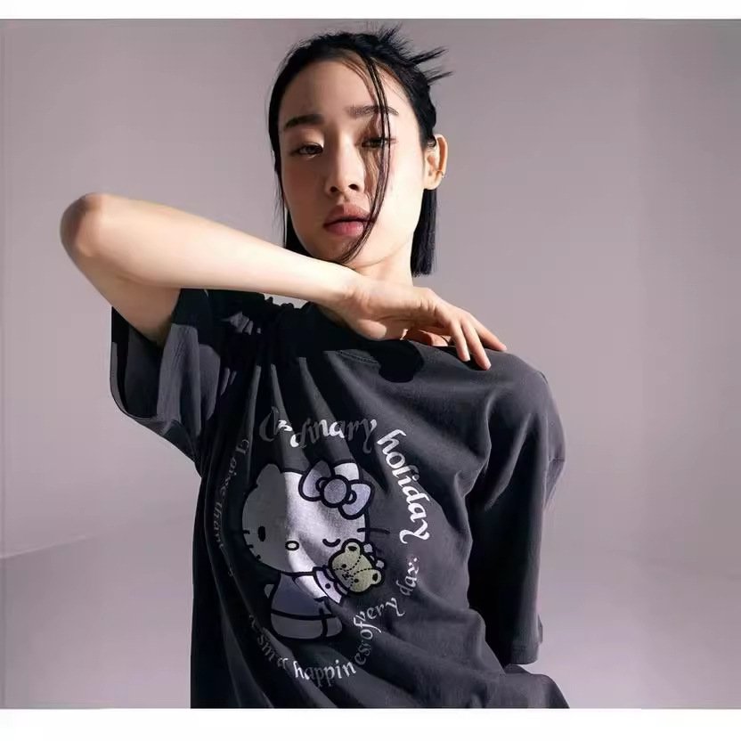 Кот Кетти - это стильная и комфортная футболка с коротким рукавом, созданная для того, чтобы подчеркнуть ваш образ в повседневной жизни. Эта футболка с круглым вырезом и широкими рукавами идеально подойдет для прогулок, походов в кафе или вечерних встреч с друзьями.