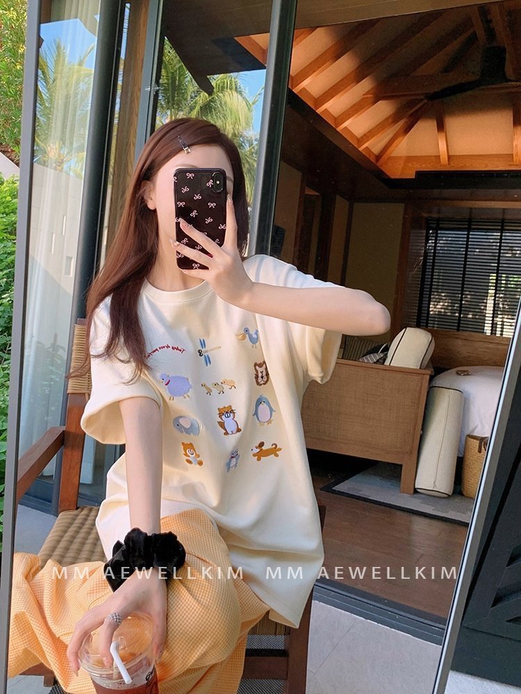 Футболка выполнена из высококачественного материала, обеспечивающего отличную воздухопроницаемость и комфорт в жаркие дни. Уникальный дизайн с ярким и ярким карманным паттерном делает эту футболку стильным и модным выбором для молодых девушек.