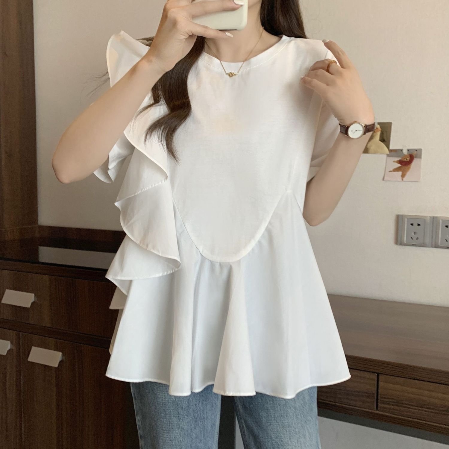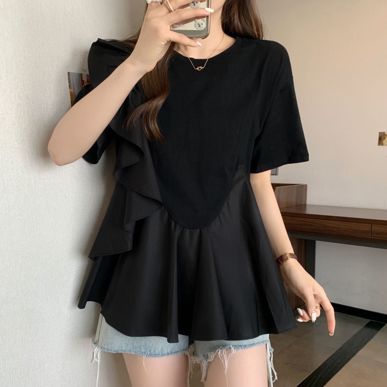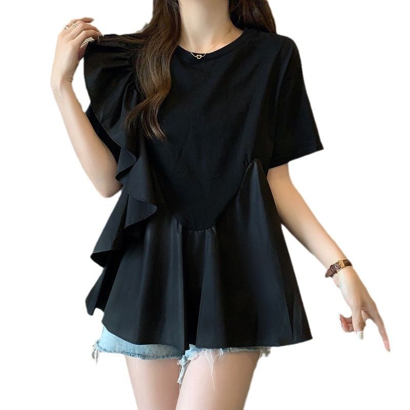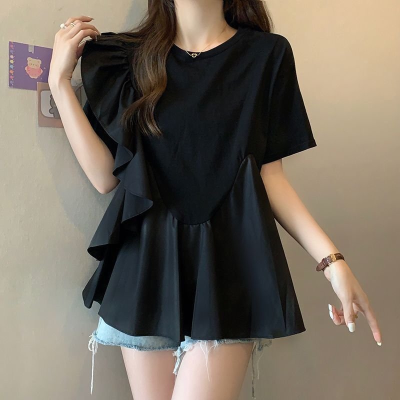 Женская футболка с коротким рукавом - это стильная и удобная одежда для летнего сезона. Изготовлена из высококачественного материала, который обеспечивает комфорт и хорошую вентиляцию в жаркую погоду. Главные особенности этой футболки - это уникальные цветовые комбинации, модные дизайнерские элементы, идеальная посадка и стильный вид.