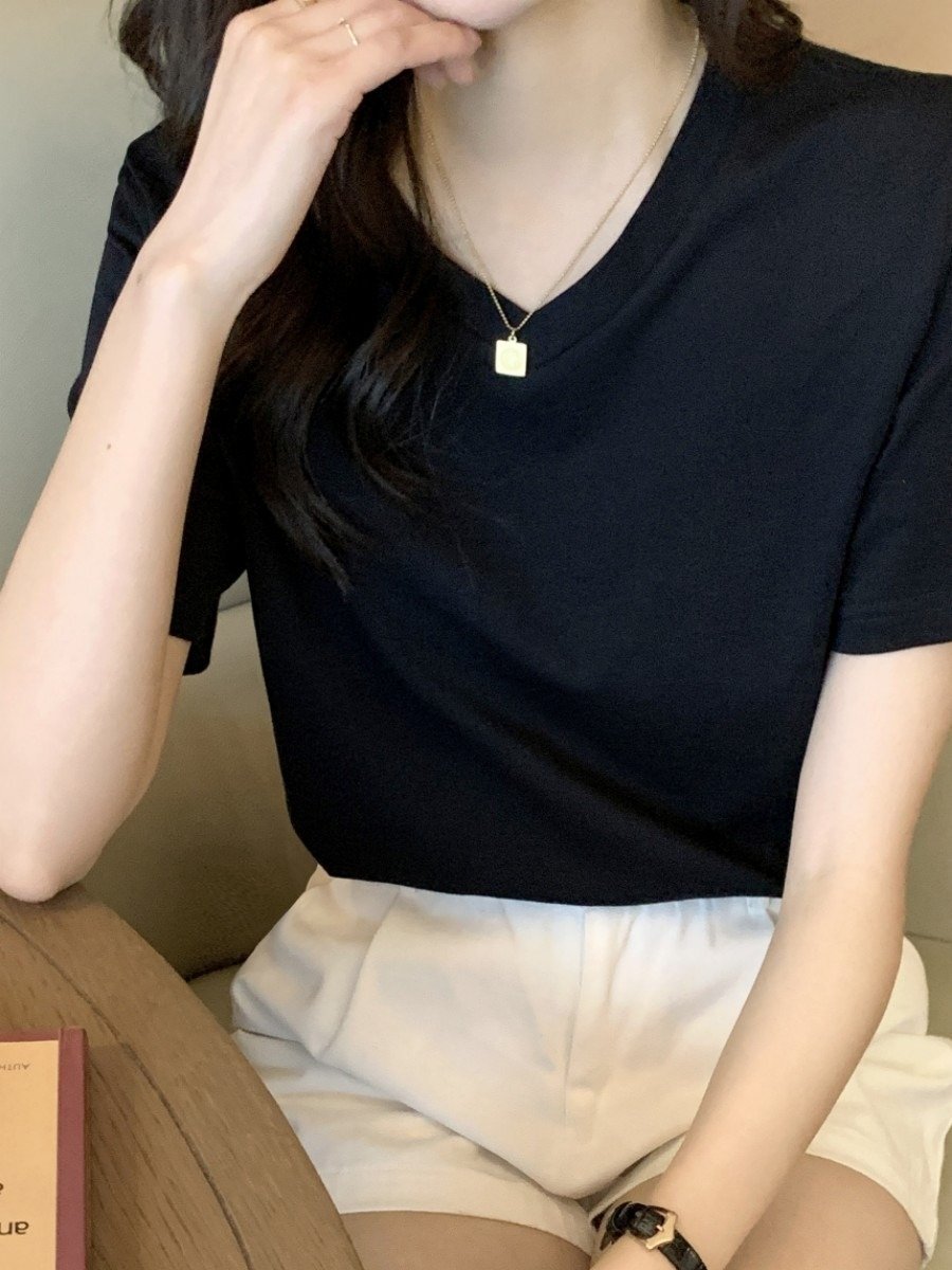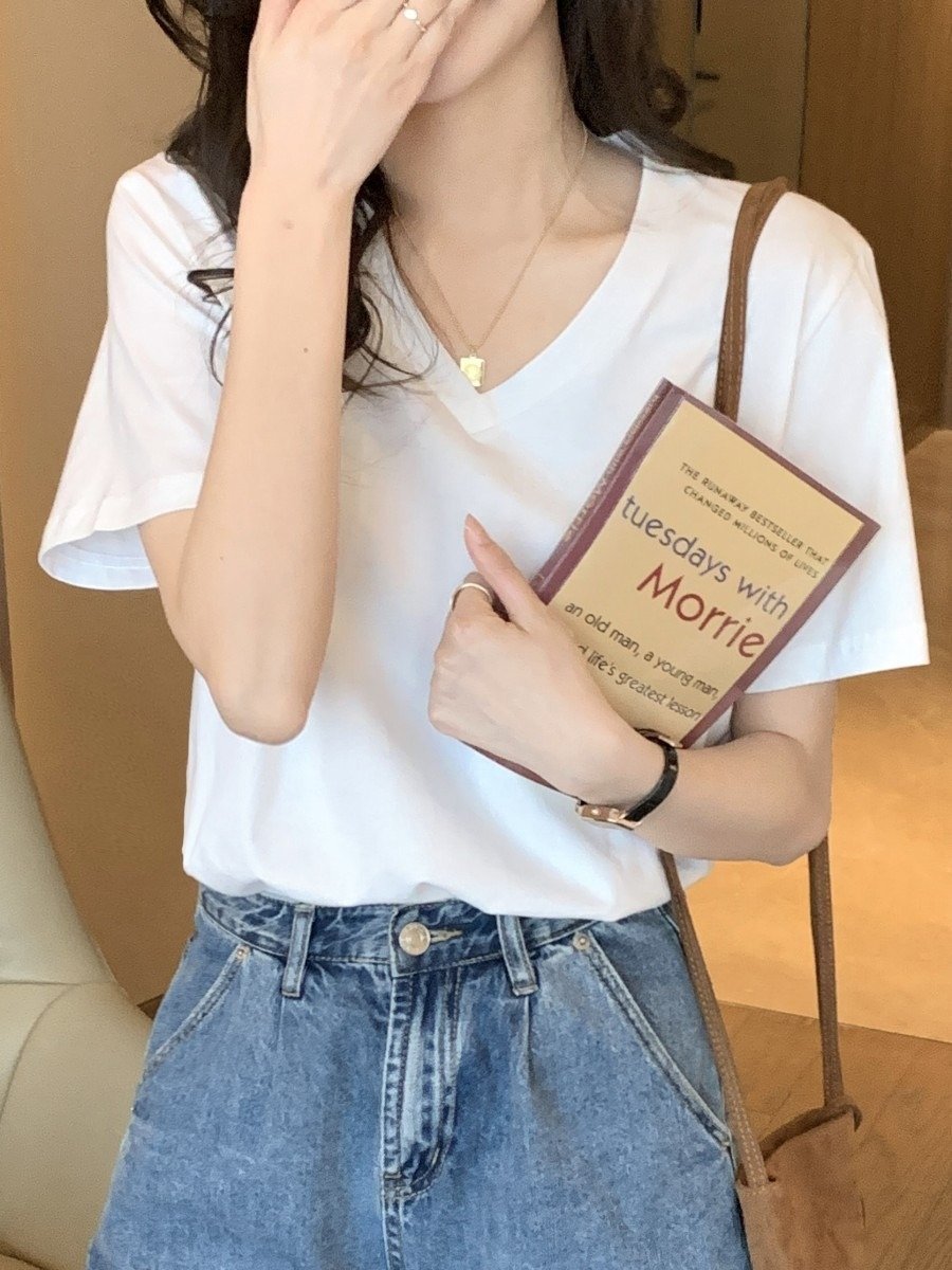 Женская футболка V-образный вырез белая 2024 лето оптом из Китая представляет собой отличный выбор для тех, кто ценит качество и стиль в одежде.