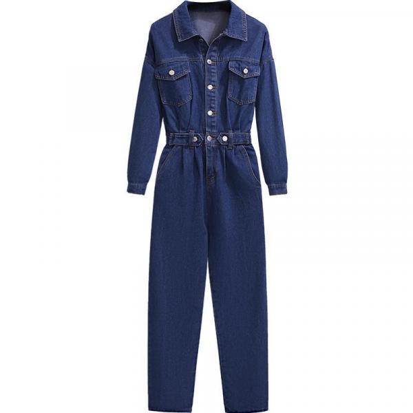 Комбинезон представлен в разных размерах, чтобы каждая женщина могла подобрать подходящий вариант. Темно-синий цвет джинса придает ему элегантность и очарование.