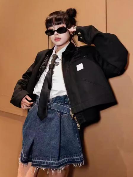 В осенне-зимней коллекции 2023 года представлены цвета: бежевый, синий, черный. Куртка имеет размеры: 1, 2, 3.