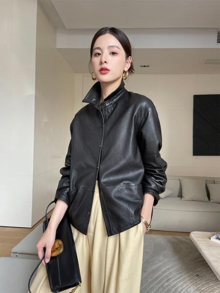Женская кожаная куртка с коротким воротником оптом из Китая идеально подойдет для повседневной носки. Она обладает комфортными пропорциями, что делает ее подходящей для разных типов фигур.