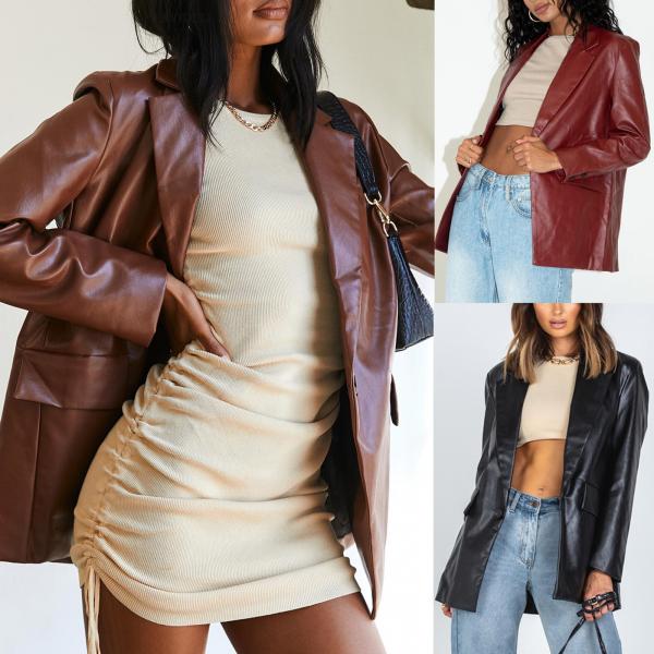 Бренд: 欧美亚马逊女式皮衣春秋新款 皮革外套休闲保暖西装夹克女SU3129
