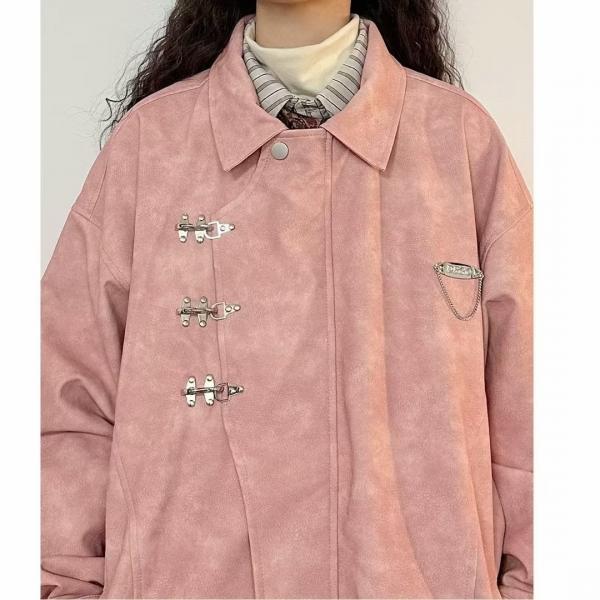 Женская куртка с металлической застежкой и розовой кожаной отделкой оптом из Китая — лучший выбор для тех, кто ценит качество и уникальный дизайн.
