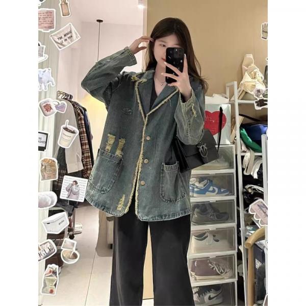 Женский джинсовый пиджак - это идеальный выбор для создания стильного и модного образа. Этот пиджак дополнен износом и потертостями, которые придают ему особый шарм и делают его по-настоящему уникальным.