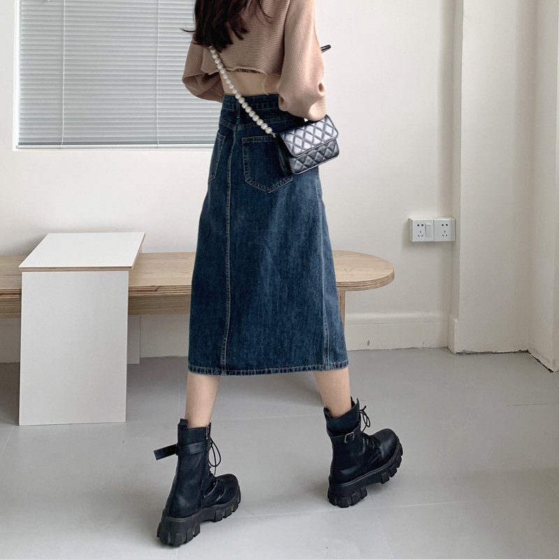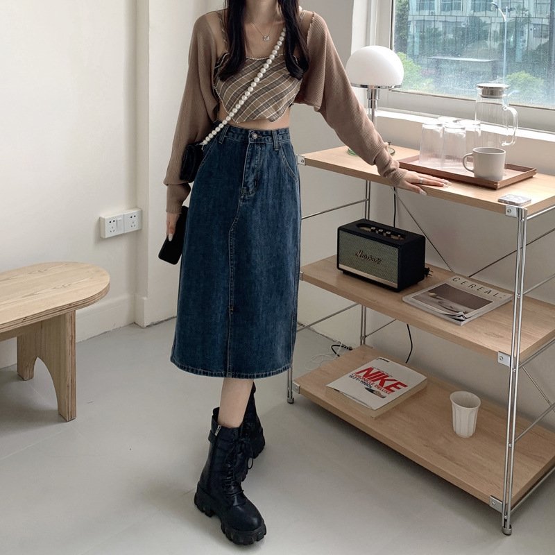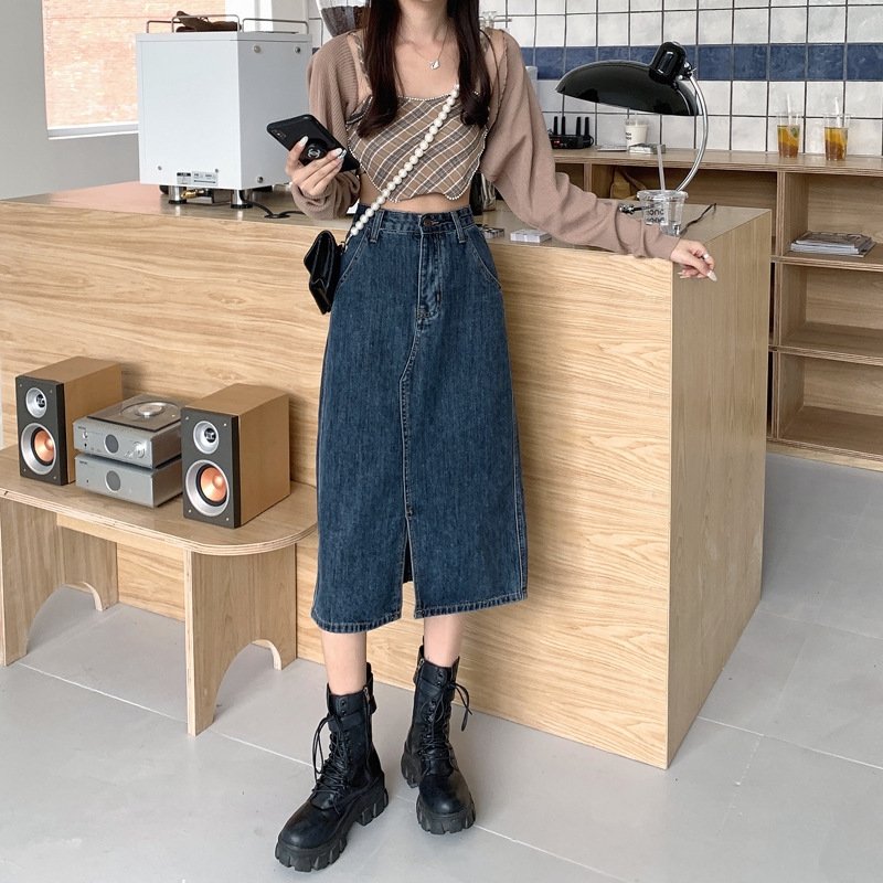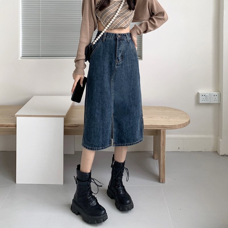 Покупайте джинсовую юбку винтажного высокого пояса оптом из Китая прямо сейчас и предложите своим клиентам элегантный вариант для разнообразных образов!