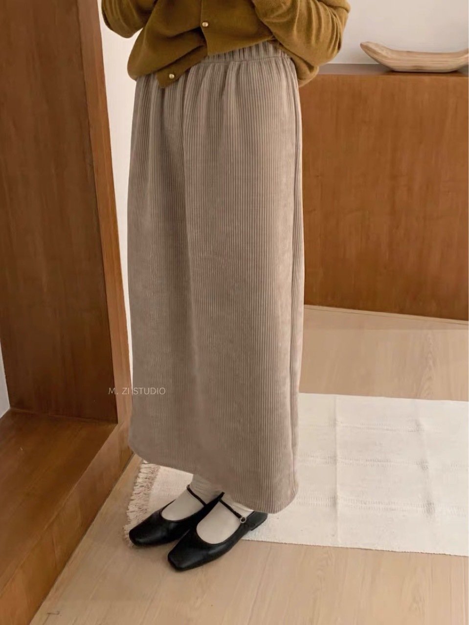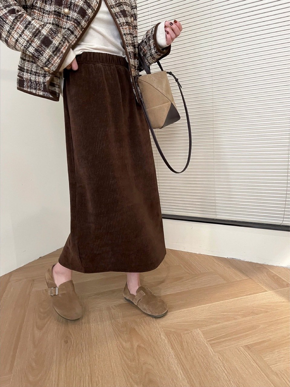 Хотите выглядеть стройнее? Тогда эта замечательная полусветлая юбка для вас! Плотный ворсистый материал, обработанный пескоструйной обработкой, придает ей более шероховатую поверхность. Внутри толстый ворс, обеспечивающий хорошую падеж и тепло. Этот материал не скатывается даже после длительной носки, что придает ему более качественный вид. Осенью и зимой необходимо одеваться в одежду с хорошим качеством, и немного текстуры в ткани создаст образ. Яркая, но в то же время слегка утонченная форма в виде буквы А. Разрез сзади мгновенно придает образу дополнительную динамику. Не сжимающая талия с регулируемой эластичностью позволяет носить ее с любым объемом талии. Вам не нужно беспокоиться о том, как скрыть свою фигуру зимой, если оденете эту модель, в которой есть толстый ворс внутри. Теперь никто не скажет, что холодно носить юбку зимой. Классический черный и теплый какао в паре не противоречат друг другу, и могут оказаться красивыми в любой комбинации.