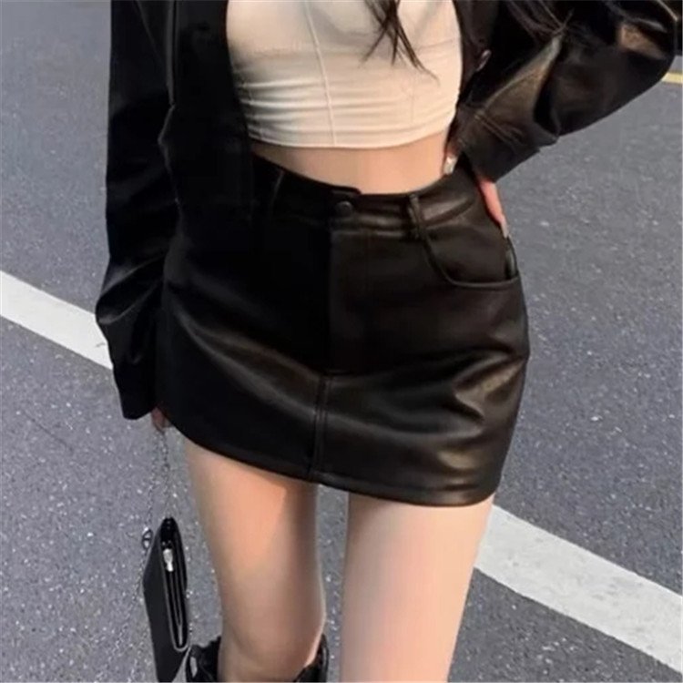 Очаруйте своих клиентов элегантной женской юбкой из PU-кожи 2023 нового дизайна высокой посадки! Закажите оптом прямо сейчас.