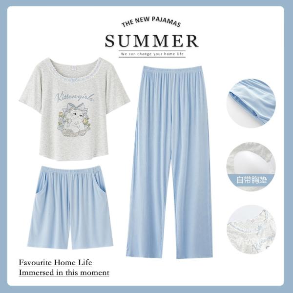 Этот пижамный комплект сделан из модала, что гарантирует мягкость, комфорт и хорошую воздухопроницаемость. Он идеально подходит для летнего сезона благодаря своим отличным дышащим свойствам, что делает его идеальным для сна или домашнего отдыха в теплое время года.