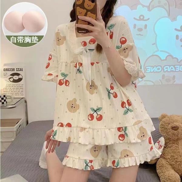 На высоте летнего сезона у каждой девушки должен быть в гардеробе удобный и практичный пижамный комплект, который не только подчеркнет ее нежность, но и будет настоящим спасением в жаркие дни. Платье из этого комплекта украшено милым рисунком с плюшевым медвежонком и сочными вишенками, а удобные шорты сделаны из мягкой, приятной к телу ткани. Комплект имеет поддерживающий бюстгальтер, что делает его идеальным выбором для отдыха дома или выхода на улицу. Выпускается в различных цветах.