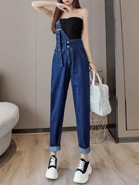 2024春秋新款时尚休闲高腰显高显瘦单肩两粒扣减龄牛仔背带裤女 - это стильные женские джинсы-сарафан с высокой талией и ремнями, которые созданы для модных дам, ценящих комфорт и элегантность. Этот актуальный элемент гардероба обязательно придется по вкусу современным модницам, которые следят за модными тенденциями и предпочитают выглядеть стильно и оригинально.