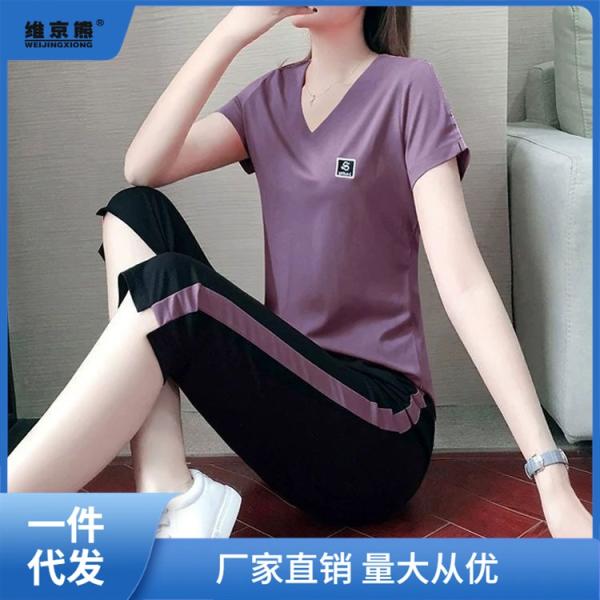 Легкий и удобный летний спортивный костюм для женщин изготовлен из высококачественной ткани. Костюм представляет собой комбинацию короткой футболки и брюк 7/8, что делает его идеальным для активного отдыха и занятий спортом. Костюм имеет модный дизайн с яркими и стильными печатями, а также удобные карманы. Этот костюм подчеркнет красоту и стройность вашей фигуры, обеспечивая комфорт и свободу движений.