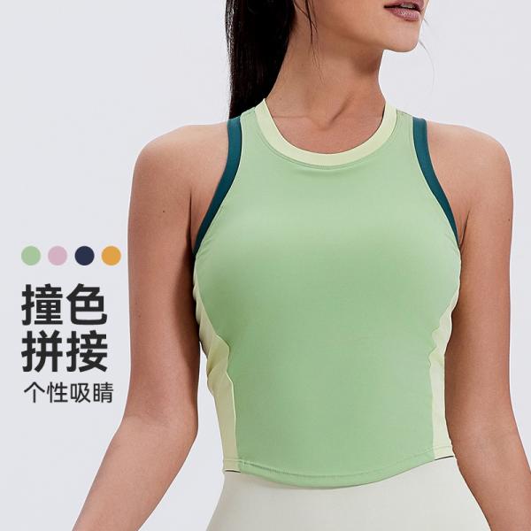 Цвет: Спортивный топ с разными вставками - желтый, миллениум-розовый, глубокий синий, зеленый инжир