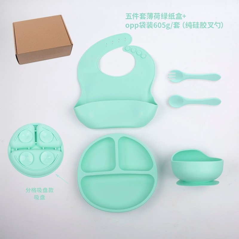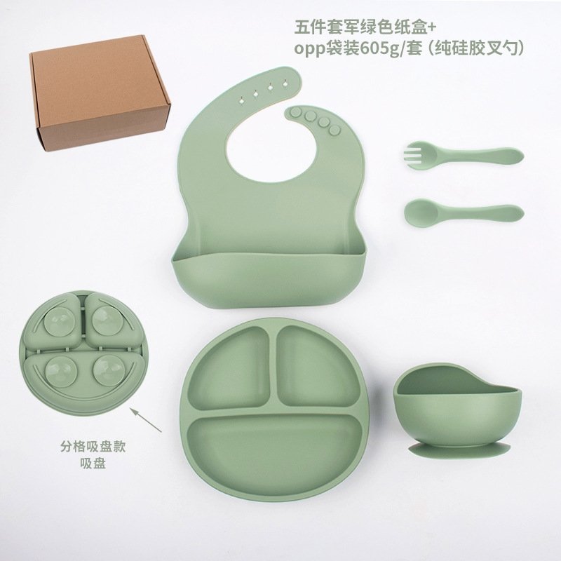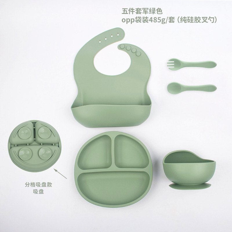 Набор посуды из силикона для детей представляет собой идеальный вариант для детского питания. В набор входят тарелка, вилка, ложка, миска и защитный бортик. Весь набор изготовлен из силикона, который обеспечивает безопасность и удобство использования.