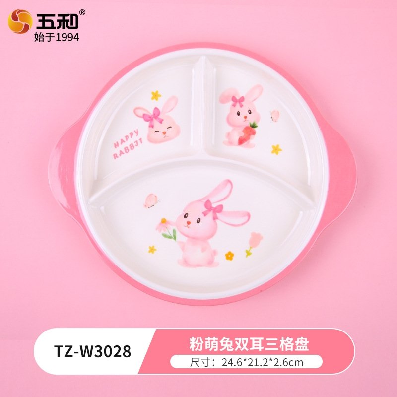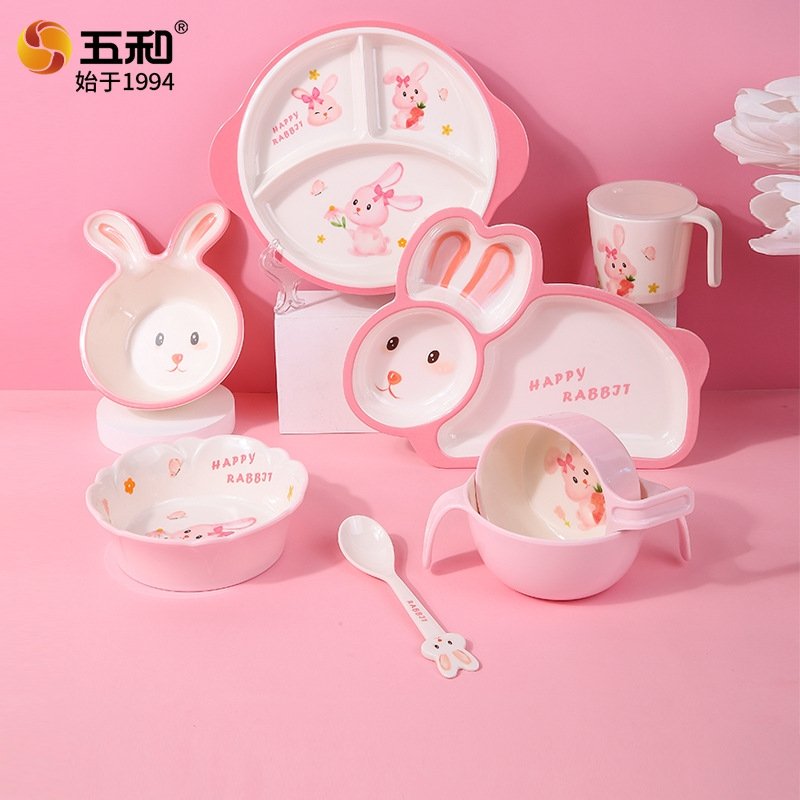 Детский посудный набор "Розовый зайчик" сделан из высококачественной пищевой меламина, что делает его прочным, легким и безопасным для использования детьми. Набор состоит из разнообразных предметов - от разделочной тарелки до чашки и ложки, всех украшенных милыми и яркими изображениями забавного зайчика. Этот набор не только приближает ребенка к приему пищи, но и помогает создать насыщенный и радостный опыт общего стола.