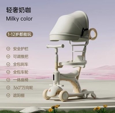 Собираясь на прогулку, родители могут выбрать наиболее удобный вариант использования самоката для ребенка: сопровождать его, толкая самокат как коляску, или позволить самому малышу управляться с ним. Плюс, в комплекте имеется защитный тент, чтобы малыш мог кататься даже в жаркую погоду. А так же, самокат может использоваться как игрушка для развития детей разного возраста.
