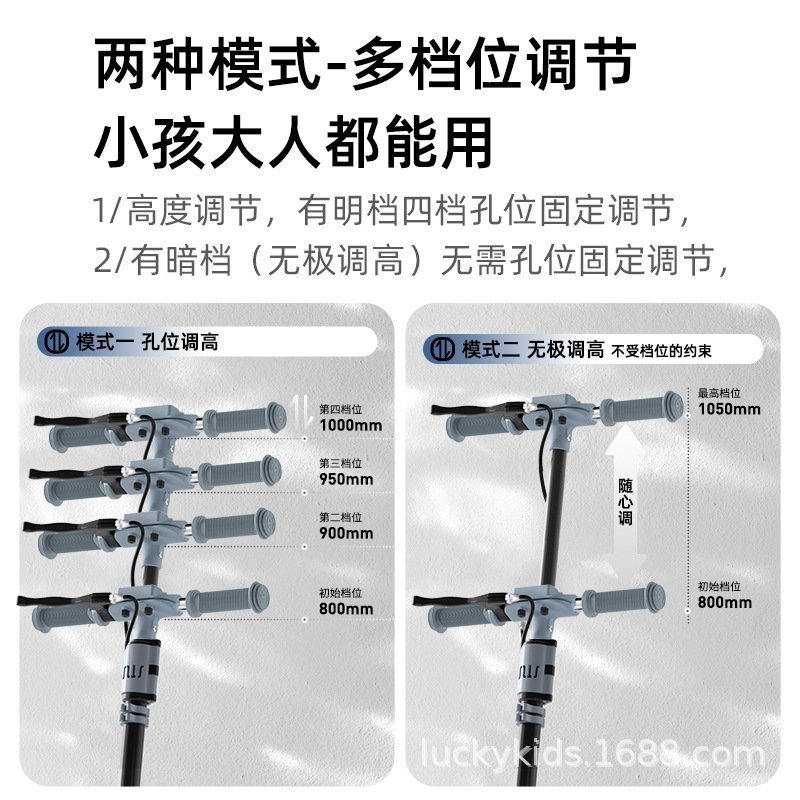 Детали и регулировки устанавливаются в двух режимах - многоступенчатая настройка, для детей и взрослых. Регулируемая высота, четыре отверстия для фиксации установки в ясных шестернях, есть пригнанная настройка (бесконечная настройка по высоте) без фиксации отверстий, что позволяет детям и взрослым играть, соответствующая возрастной группе.