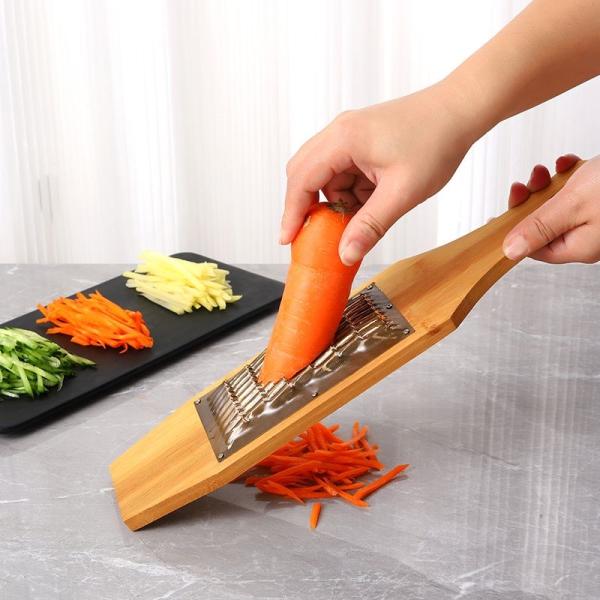 Этот многофункциональный рубанок предназначен для нарезки овощей и фруктов. Он имеет инновационный дизайн, который придаст вашей повседневной жизни более высокое качество. Рубанок выполнен из бамбука и чистой меди, что делает его идеальным для нарезки фруктов и овощей. В комплекте имеется 6 сменных лезвий различной толщины, позволяющих нарезать овощи и фрукты толщиной от 3,5 мм до 9 мм. Удобен в использовании благодаря эргономичной конструкции рукоятки, которая обеспечивает комфортное и удобное взятие. Рубанок также можно легко хранить на кухонных полках, что делает его очень удобным в использовании.