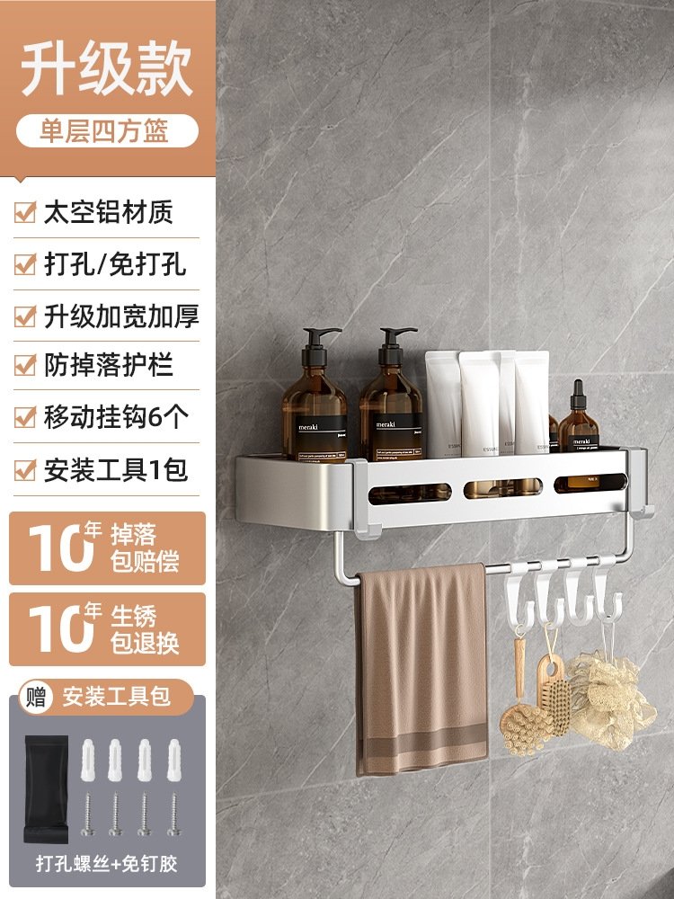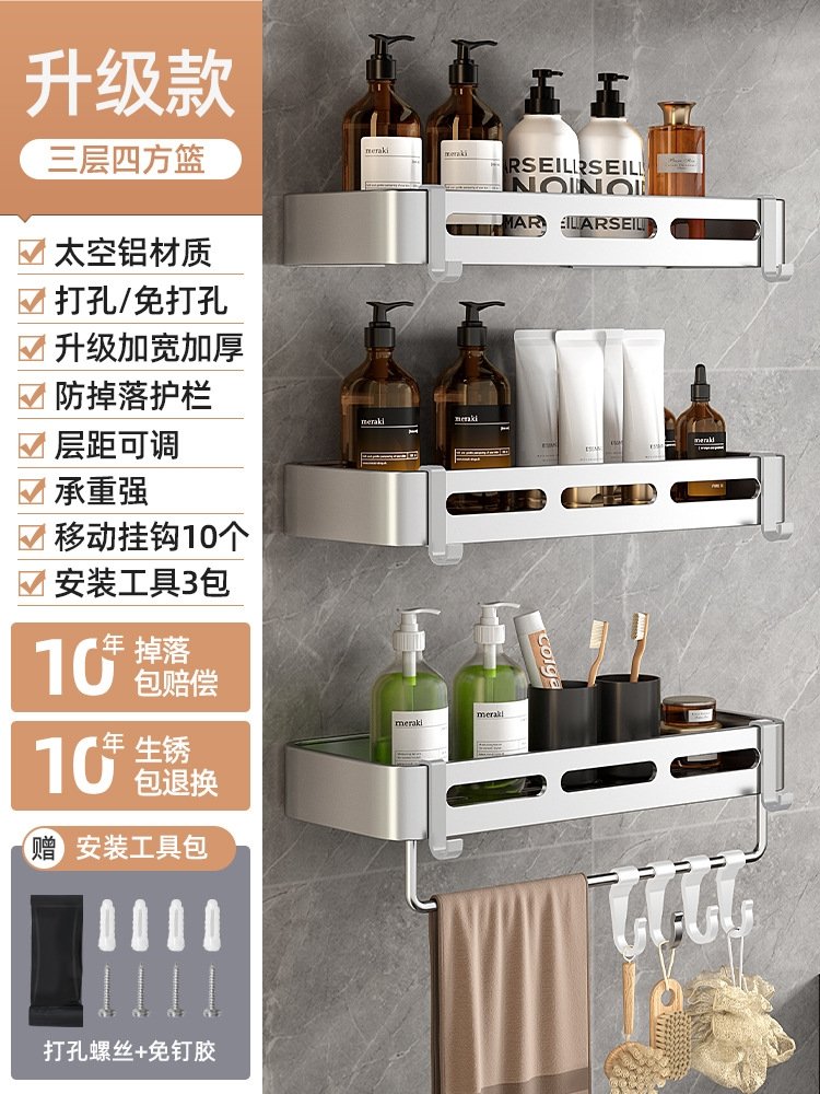 Улучшите хранение в своей ванной комнате и сделайте ее более функциональной с помощью полки для ванной комнаты без сверления. Этот удобный и стильный аксессуар идеально подходит для укладки полотенец, косметики, аксессуаров для волос и других предметов. Он изготовлен из прочного алюминиевого сплава, что обеспечивает надежность и долговечность. Более того, он предназначен для установки без сверления, что позволяет избежать повреждения стен.